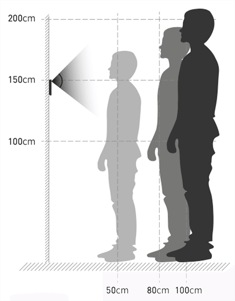 สามารถตรวจวัดอุณหภูมิพร้อมบันทึกเวลาได้ทันทีเมื่อยืนอยู่หน้าตัวเครื่อง พร้อมคุณสมบัติในการตรวจจับใบหน้าได้ในระยะไกลสูงสุด 2 เมตร (ปรับตั้งค่าได้)