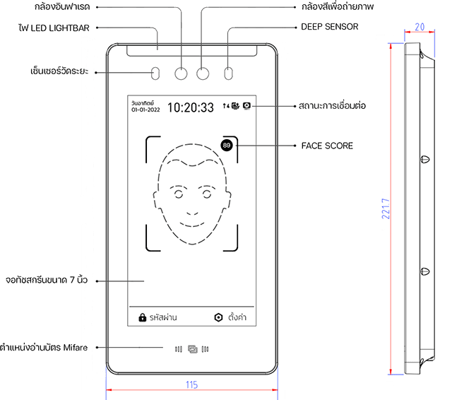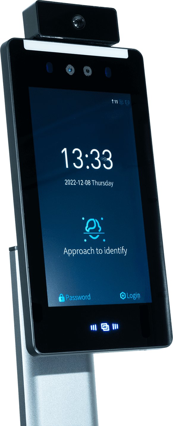 ยืนยันตัวตนพร้อมตรวจวัดอุณหภูมิด้วยระบบอินฟาเรดที่มีคุณสมบัติในการตรวจวัดแค่เฉพาะใบหน้าบุคคลเท่านั้นไม่ตรวจจับวัตถุ พร้อมถ่ายภาพและบันทึกอุณหภูมิได้ภายในระยะเวลาเพียง 1 วินาที